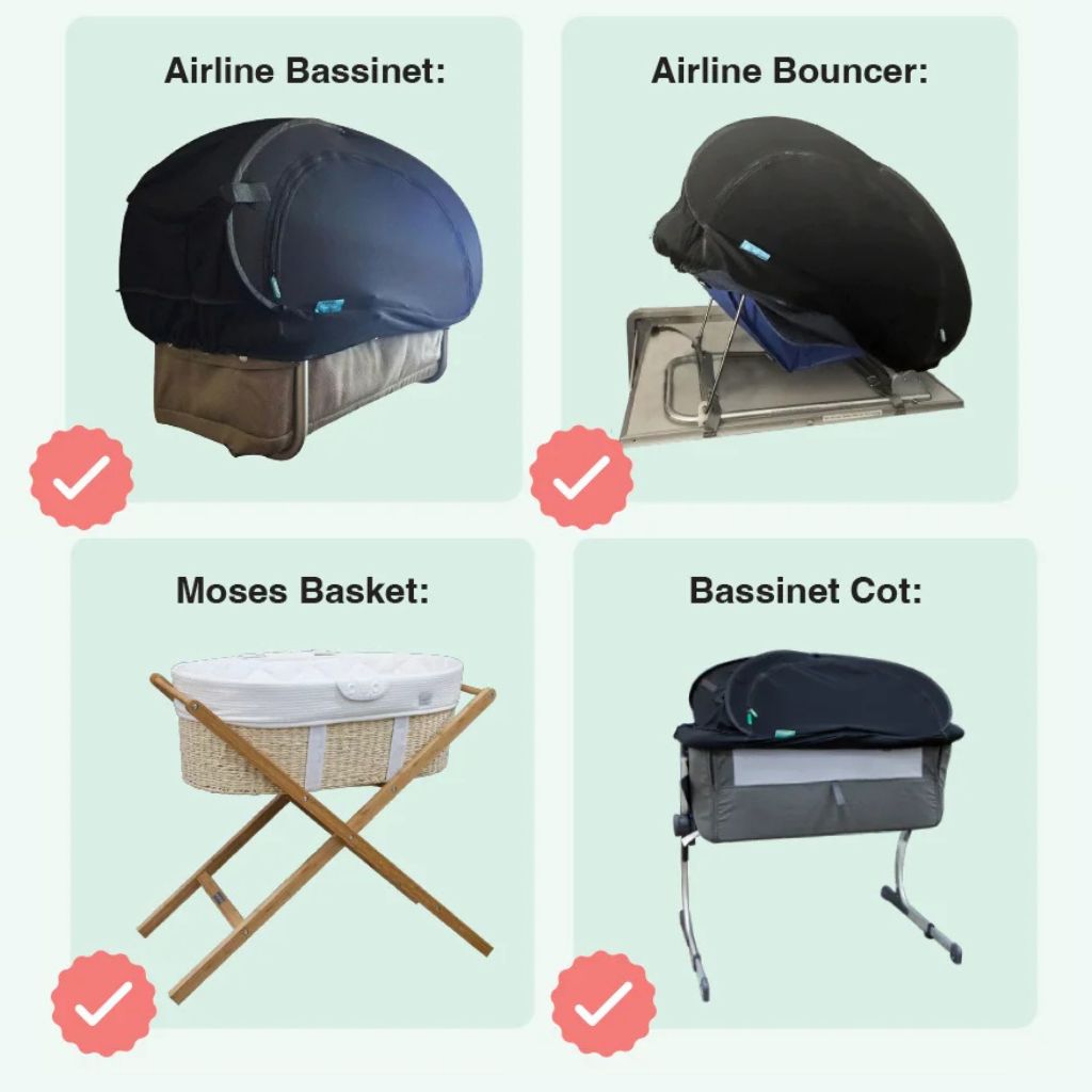 CoziGo is designed to fit most airline bassinets. There are a number of old aircraft that carry bassinets that are not appropriate to use with CoziGo. If you are unlucky enough to get a bassinet that CoziGo doesn't fit, take a photo of it and return the unit in unused condition and we will offer a full refund.