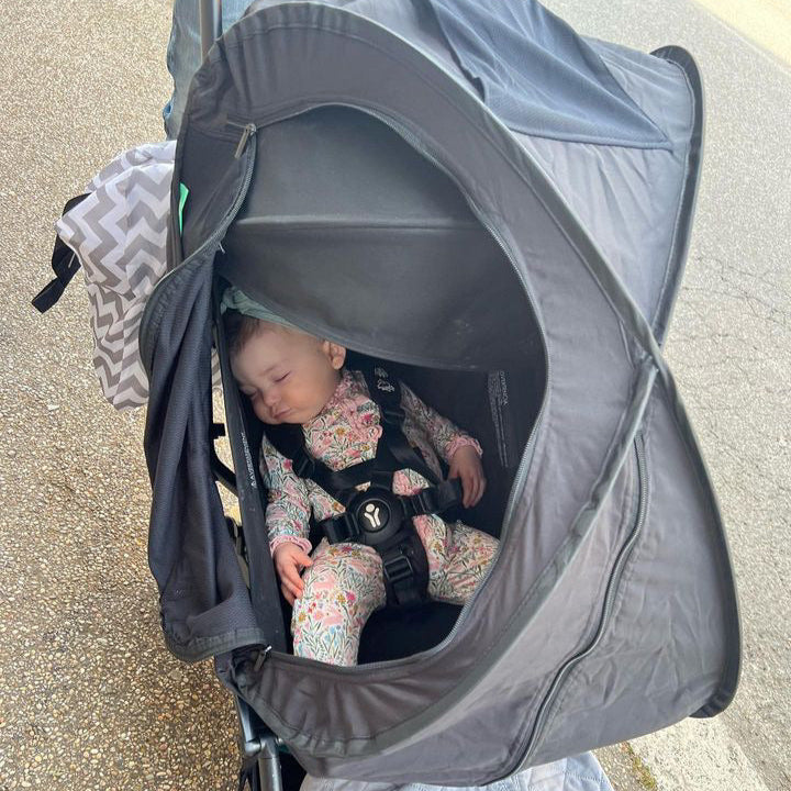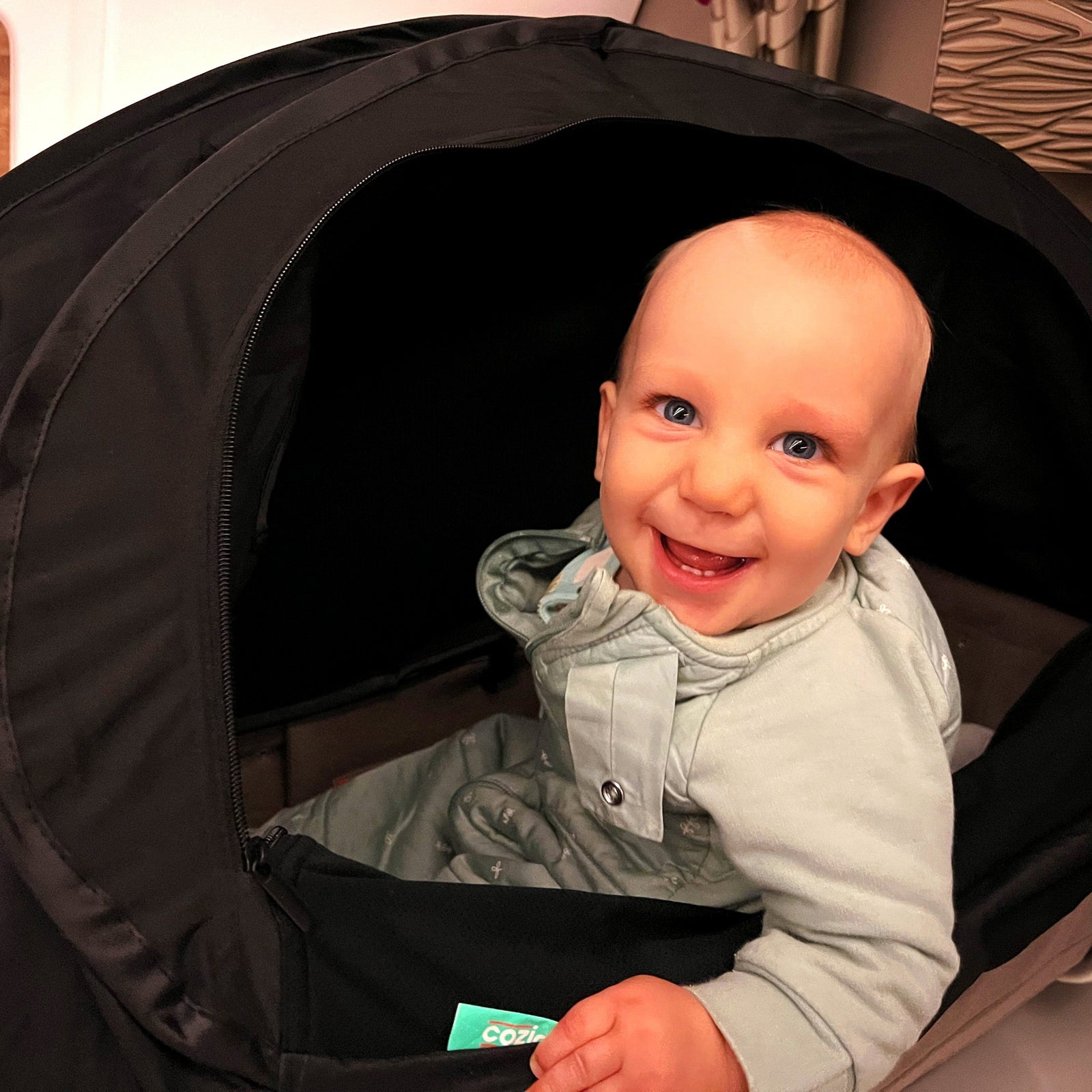 At every opportunity you can! CoziGo allows you the flexibility to get out and about when you need to without disturbing your baby’s sleep routine. CoziGo is a universal pram & stroller cover perfect for mums with babies needing a pram cover. Take it everywhere with you whenever you want your baby to sleep - for peaceful coffees, outings, day trips, holidays, weekends away, trips to friends and relatives houses and most importantly any in-flight bassinet. CoziGo blackout pop-up canopy for in-flight bassinets is a must have accessory